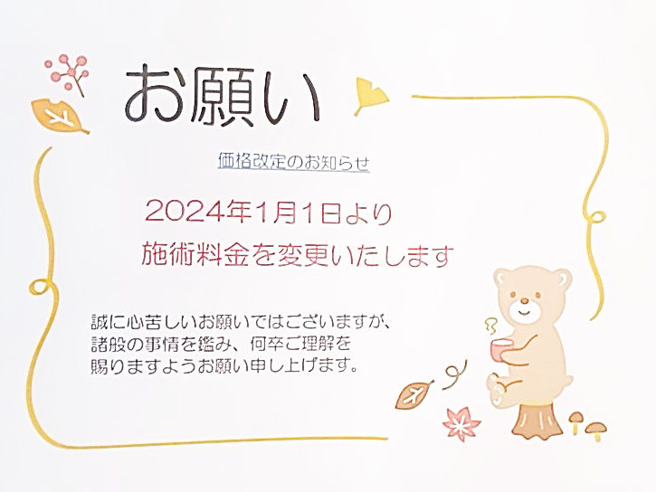 ※講習会などで不在にする場合がございます 施術は御相談ください